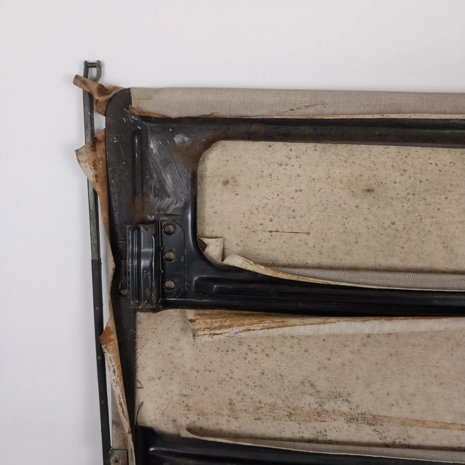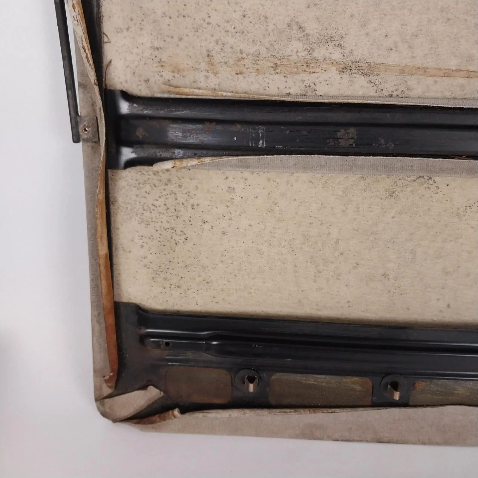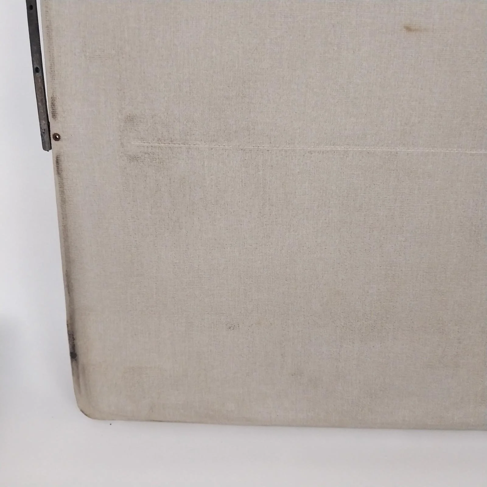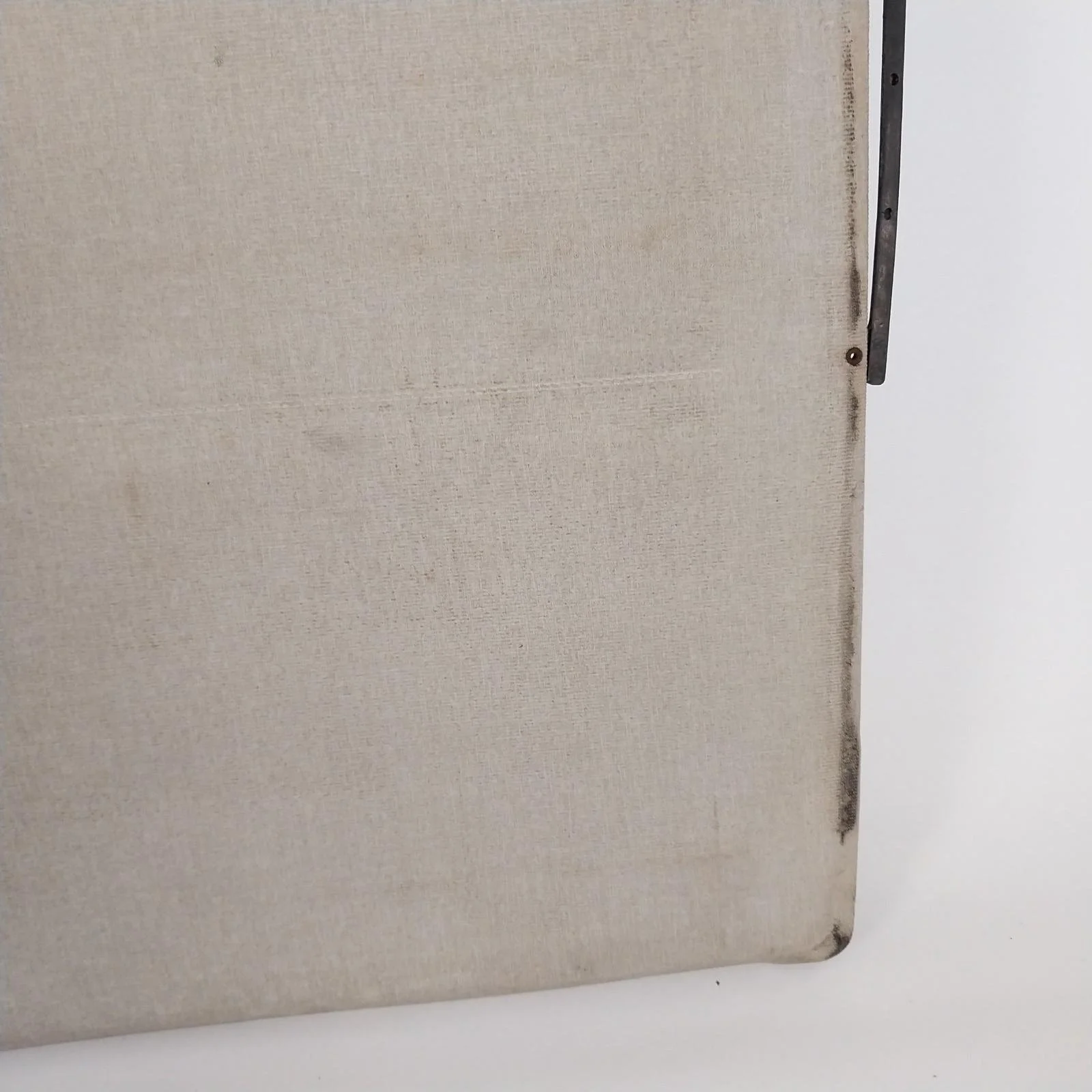 Good overall condition. No rips or tears in the cloth. Upholstery on the back side is lifting in areas and could be re-glued for a tighter finish.