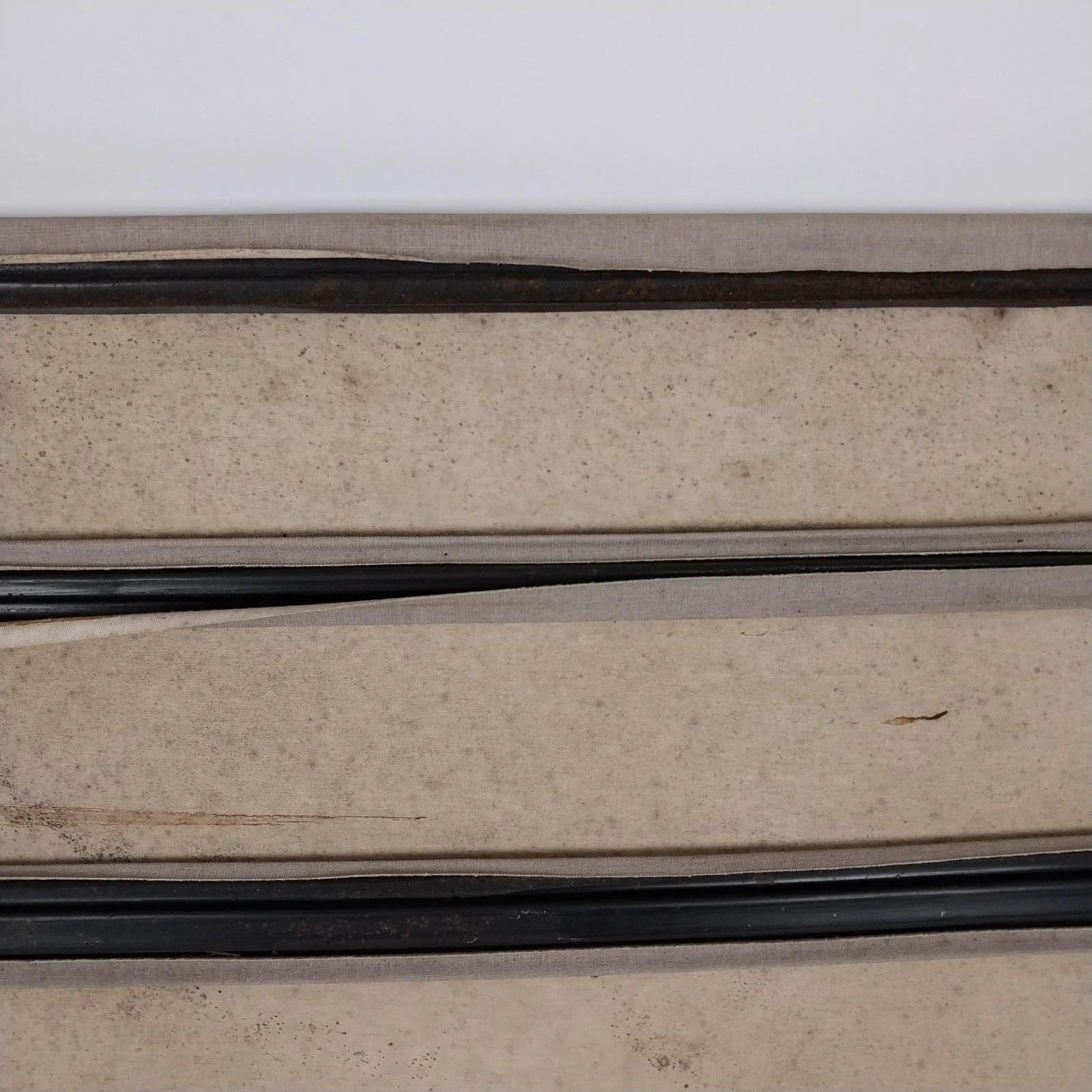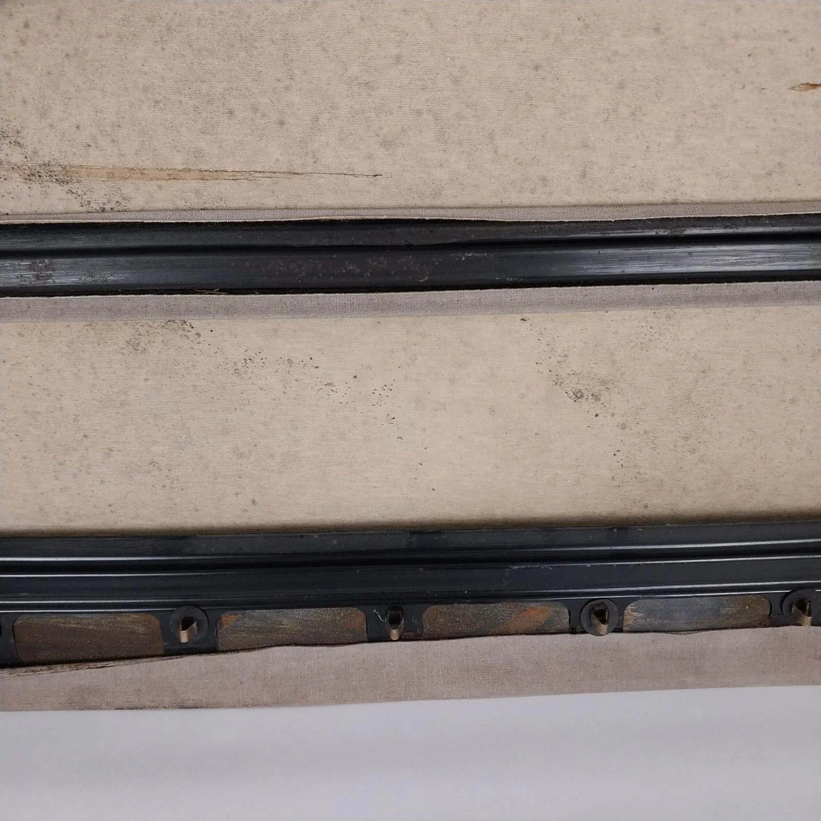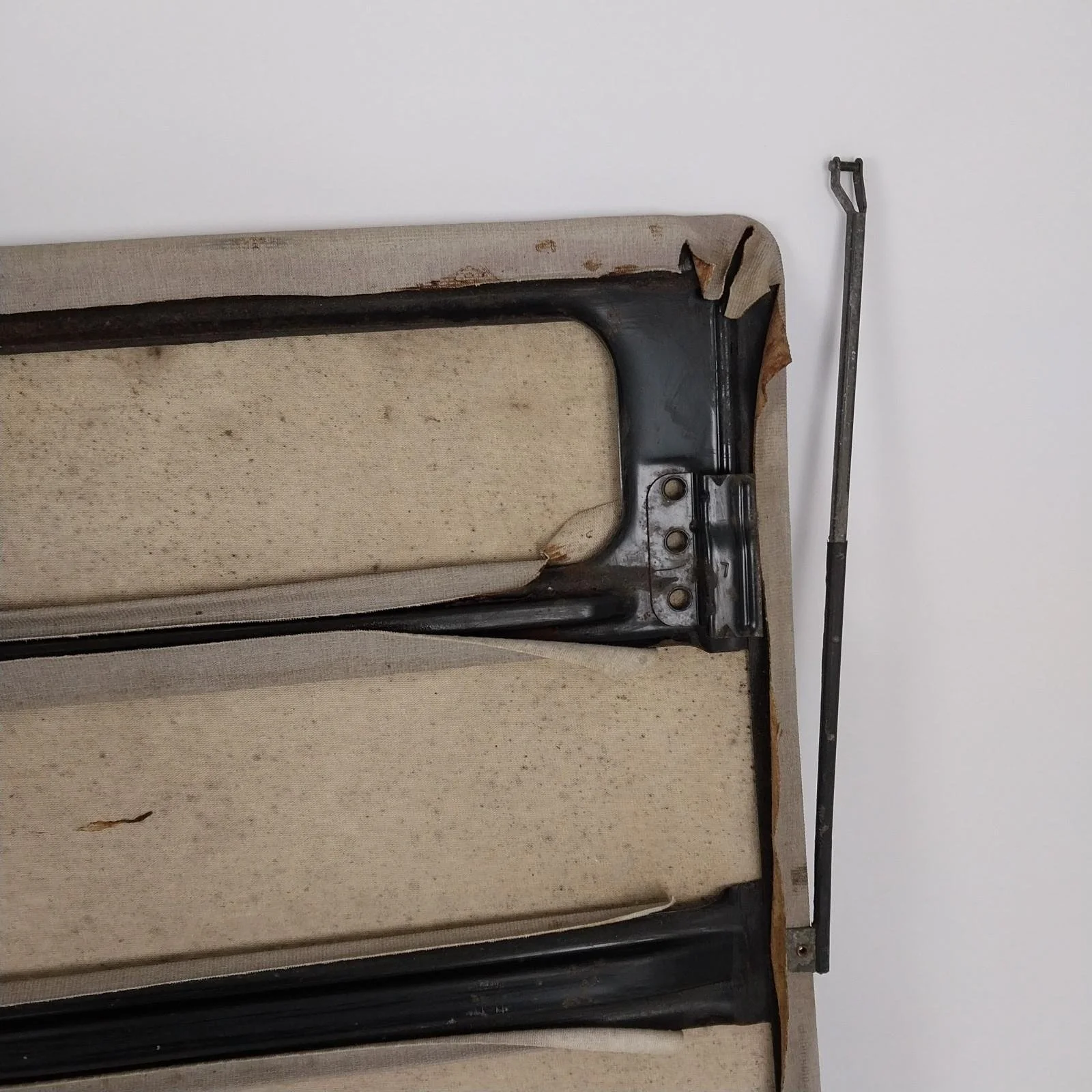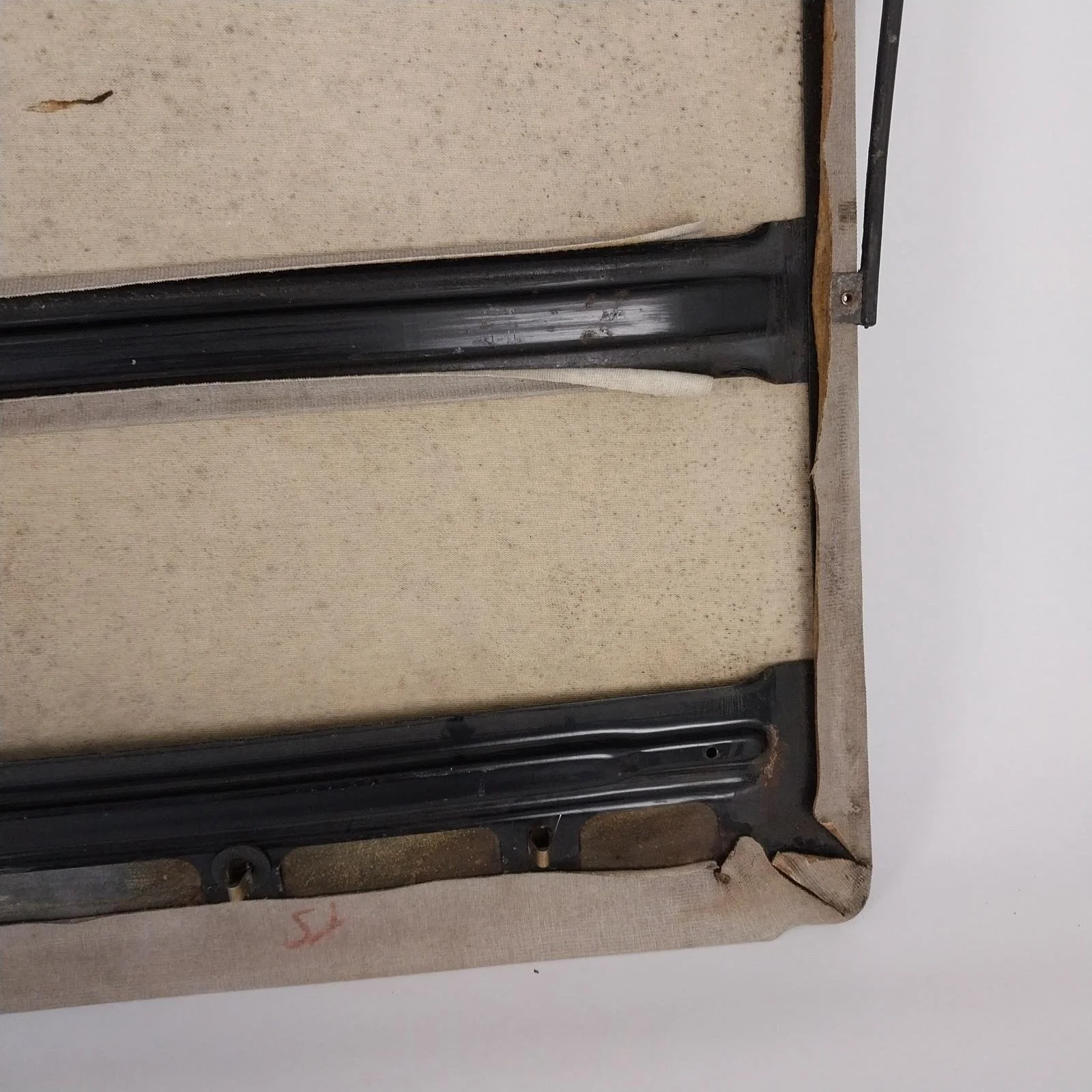 Good overall condition. No rips or tears in the cloth. Upholstery on the back side is lifting in areas and could be re-glued for a tighter finish.