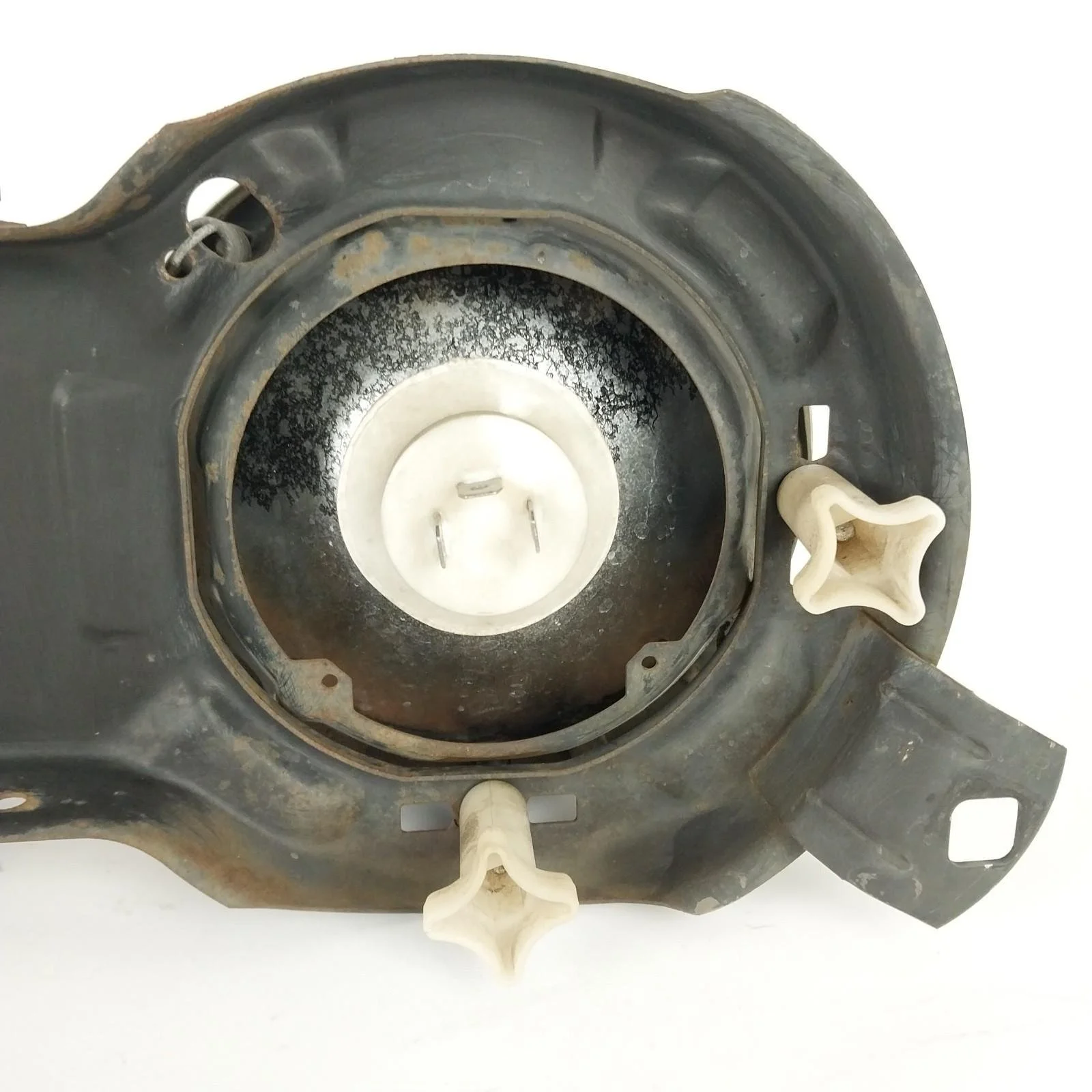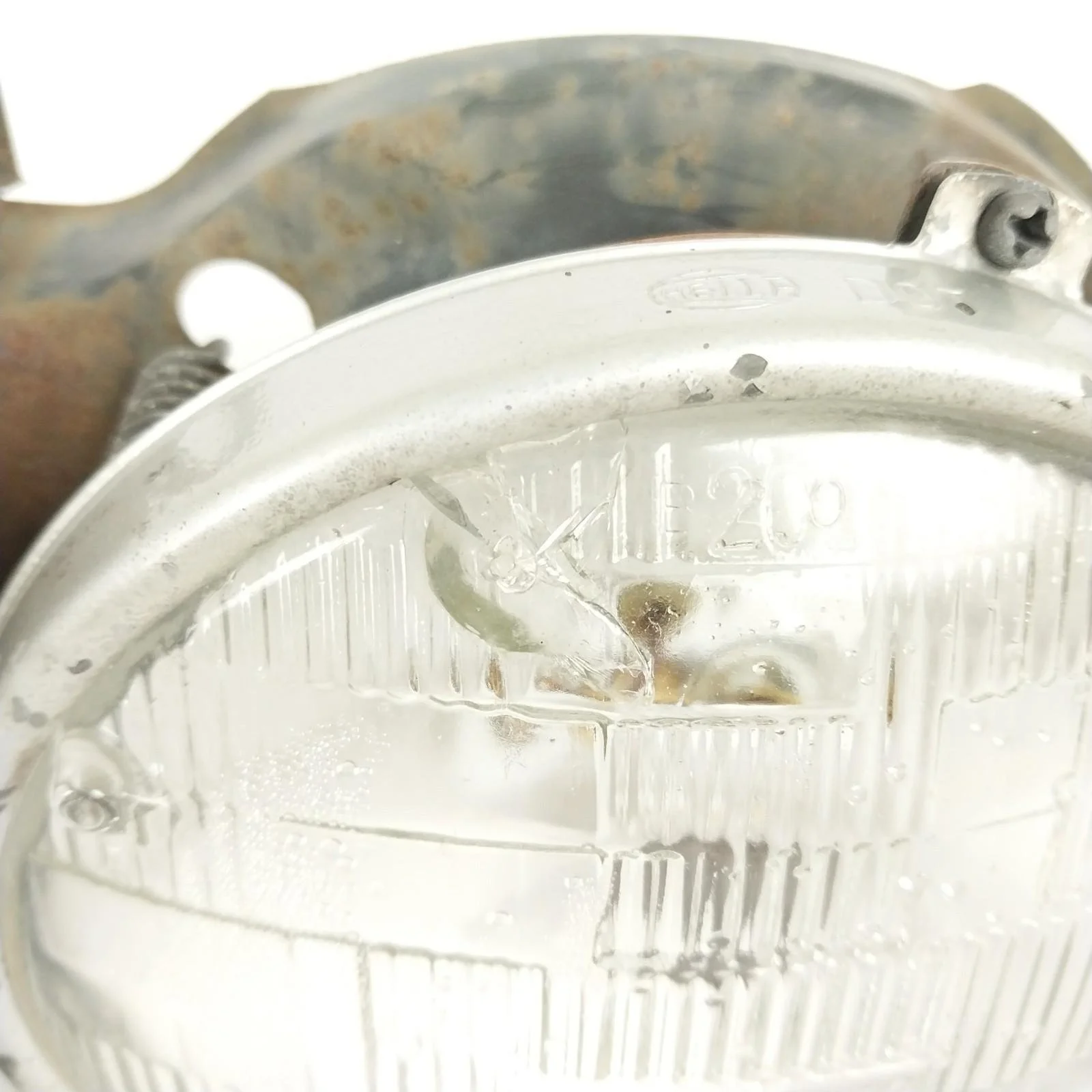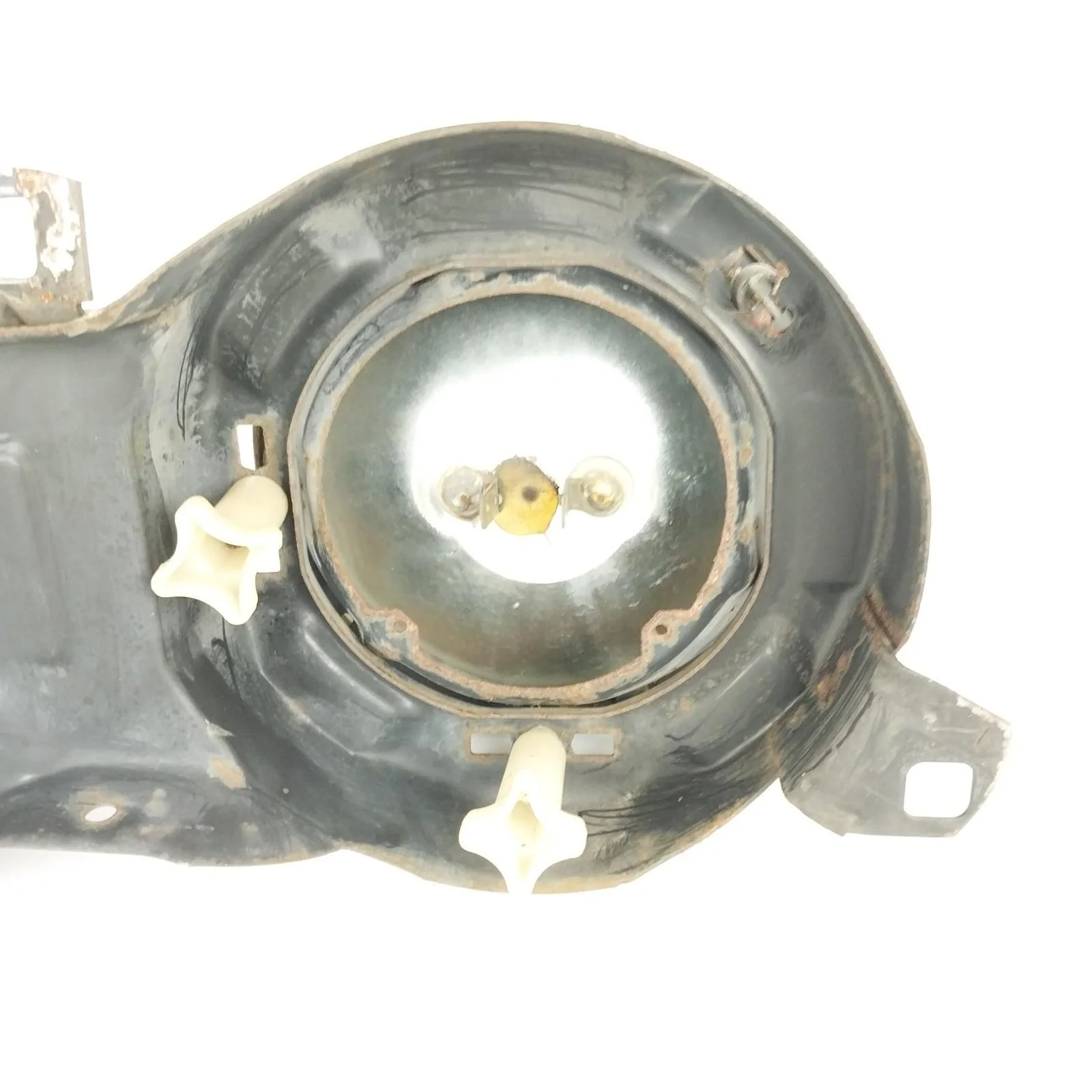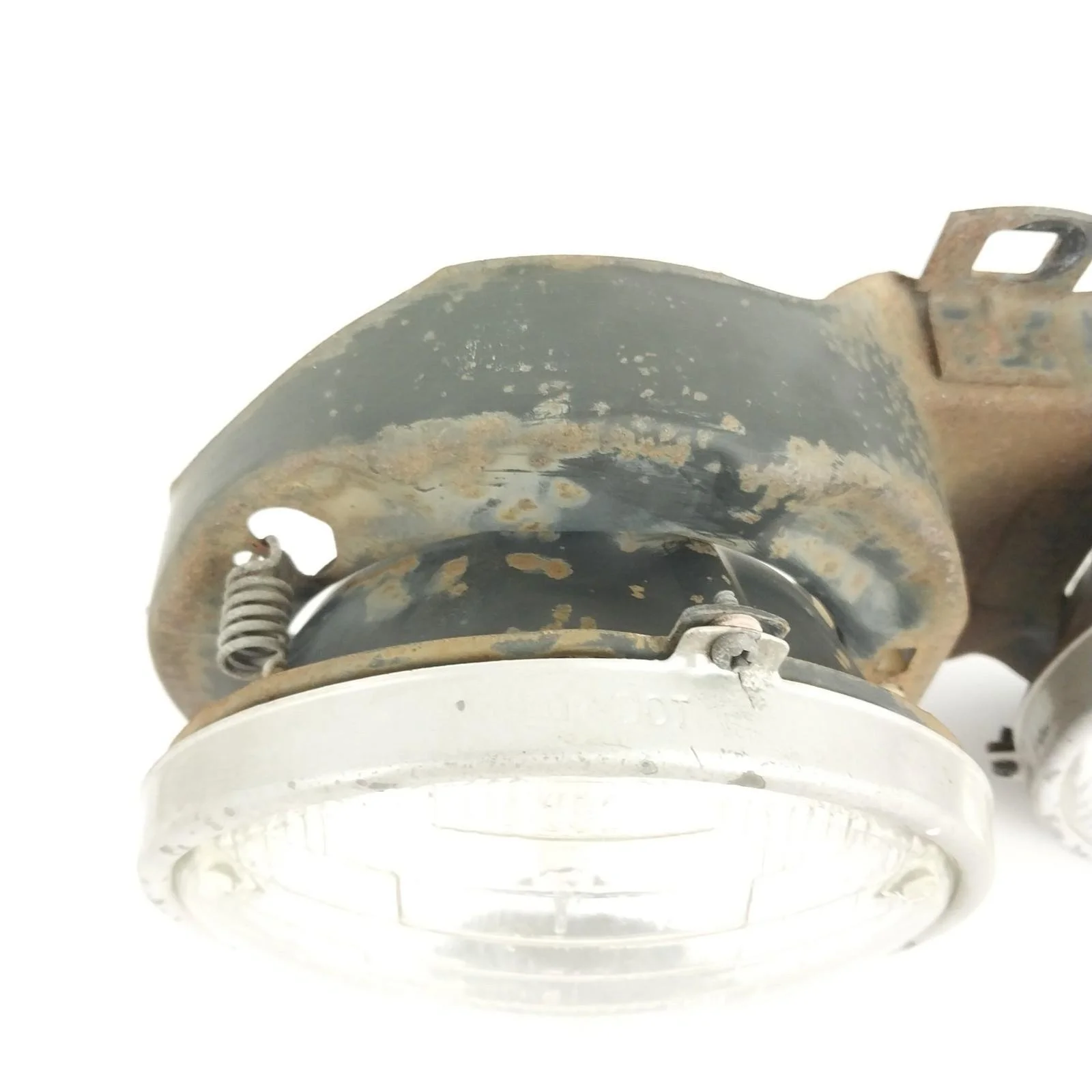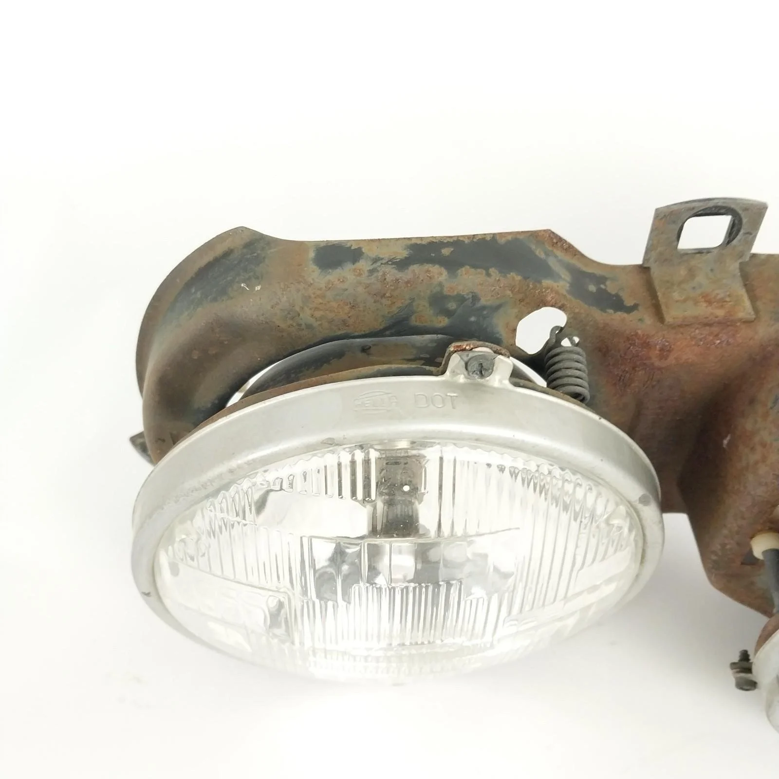 Tested. Left side low beam works but one of the filaments is burnt out. All other lights are in good working order. Left side low beam has a crack / hole in glass. Headlight supporting frames both have surface rust. See pictures for condition.