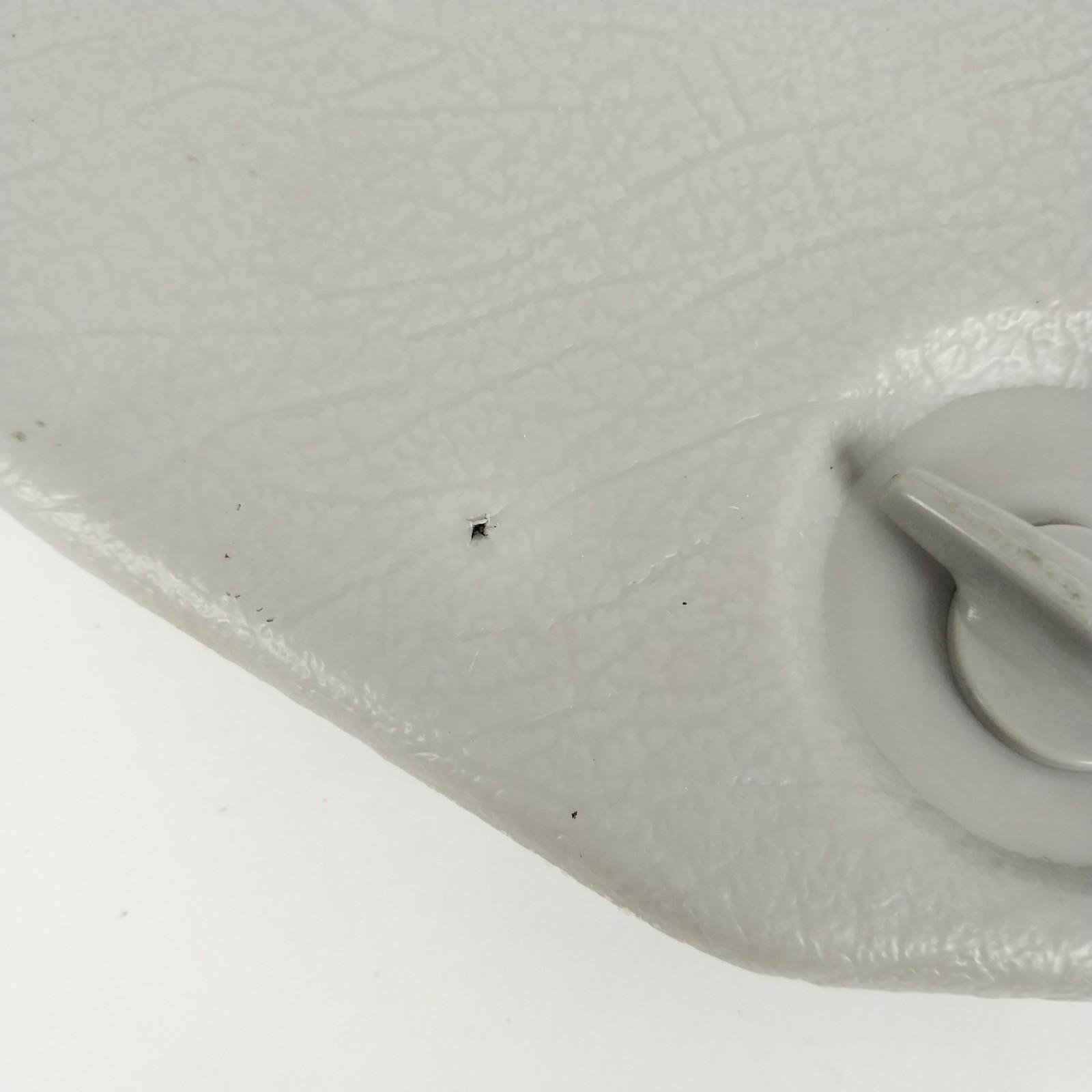 Has a small hole and some rust staining. Still structurally usable. Please review photos for condition details.
